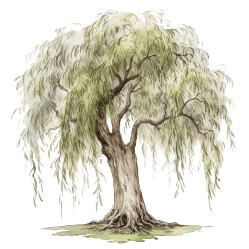 White Willow Tree Watercolor Clip Art 4 High Quality PNG